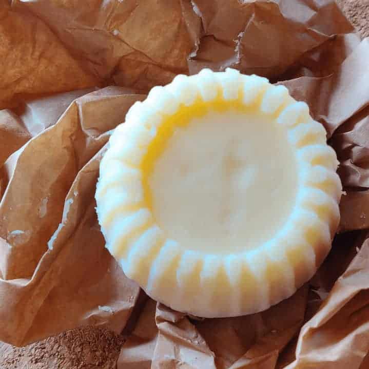 Moikka. Tuosta blogin reseptistä tulee yksi pala. Helpoin muotti on varmaan silikoninen saippua tai kakkumuotti. Olen myös valanut muovisiinpurkkeihin, josta palan saa pullautettua ulos. Esim. Muovipurkki kirkas 120ml (jonka löydät verkkokaupasta)