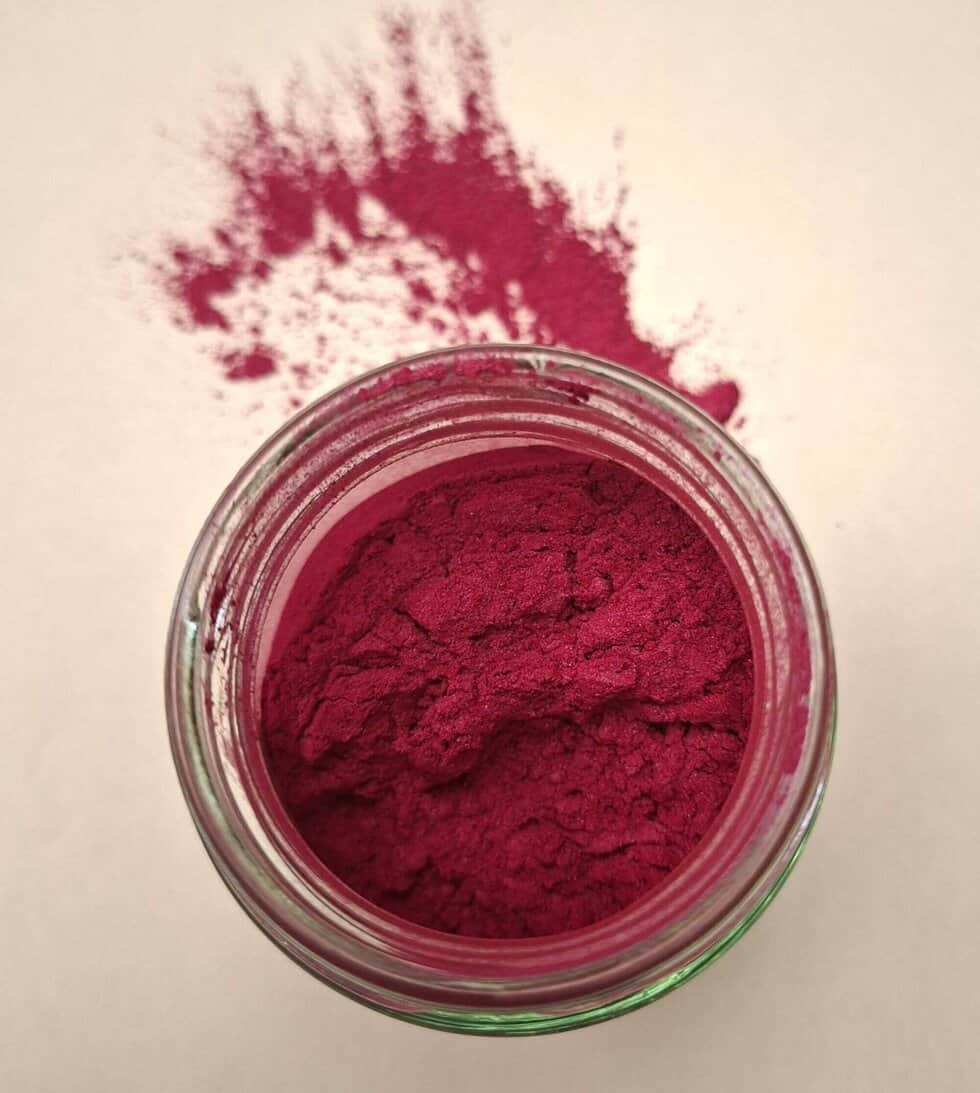 Kylmäprosessoitu saippua: noin 3-4 tl saippua kilo kohden (Jos lopputulos ei ole tarpeeksi värikäs lisää micajauhetta)