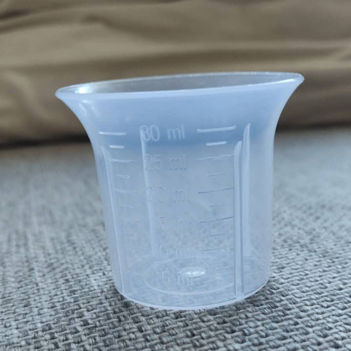 Muovinen mittakuppi 30 ml. Mittaa resepteihin tarkkoina määrinä.